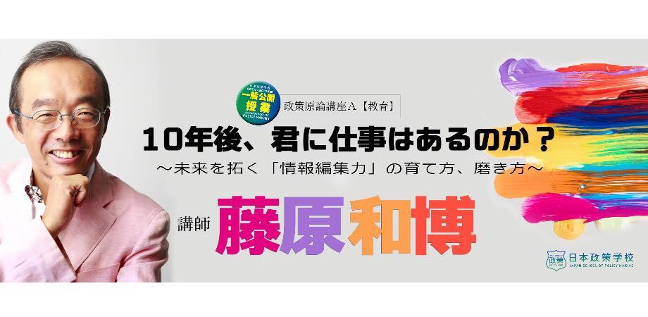 【日本政策学校】100名様限定!!藤原和博氏「10年後、君に仕事はあるのか?~未来を拓く「情報編集力」の育て方、磨き方」