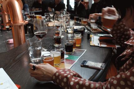 ・醸造所見学ツアーの後は醸造所併設のバーに移動し、実際にビールを飲みくらべながら、その魅力を堪能します!